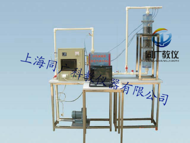 本实验装置采用有机玻璃吸附塔,以活性碳为吸附剂,通过模拟发生的有机物气体或NO气体进行吸附试验,得到吸附净化效率、不同空塔气速下穿透曲线和保护作用时间等数据。